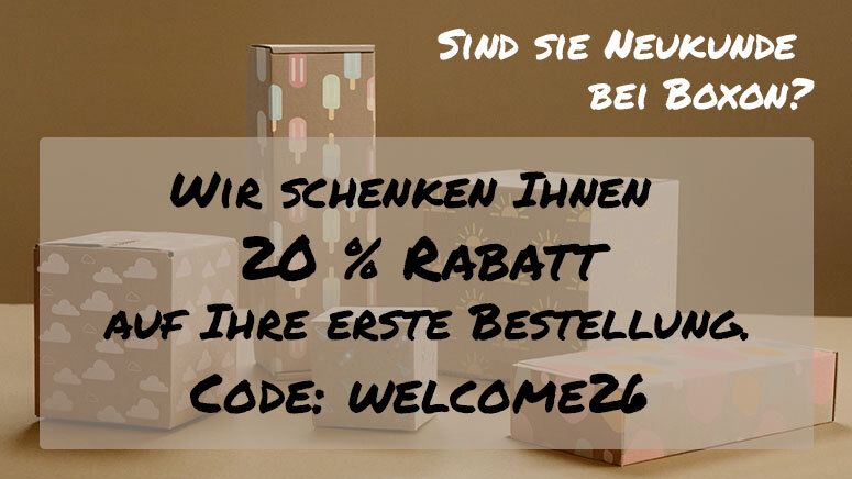 Wir geben allen Kunden, die noch nie Ihre Verpackungen über Boxon bestellt haben, einen Rabatt von 20% auf den Bestellwert. Um den Rabatt in Anspruch zu nehmen, verwenden Sie den Rabattcode: WELCOME25 im Webshop.